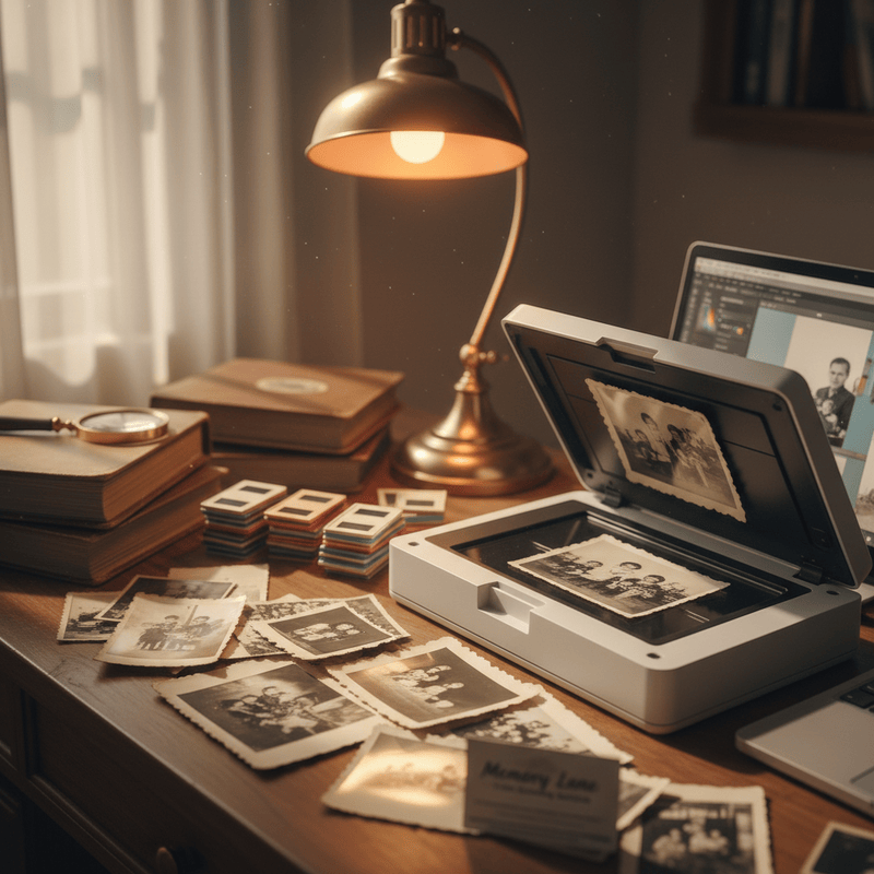 Shoeboxes full of old photographs, trays of 35mm slides from family vacations, envelopes of negatives you have never printed. Roy scans them all at high resolution, turning physical photos into digital files you can share, print, and preserve forever.